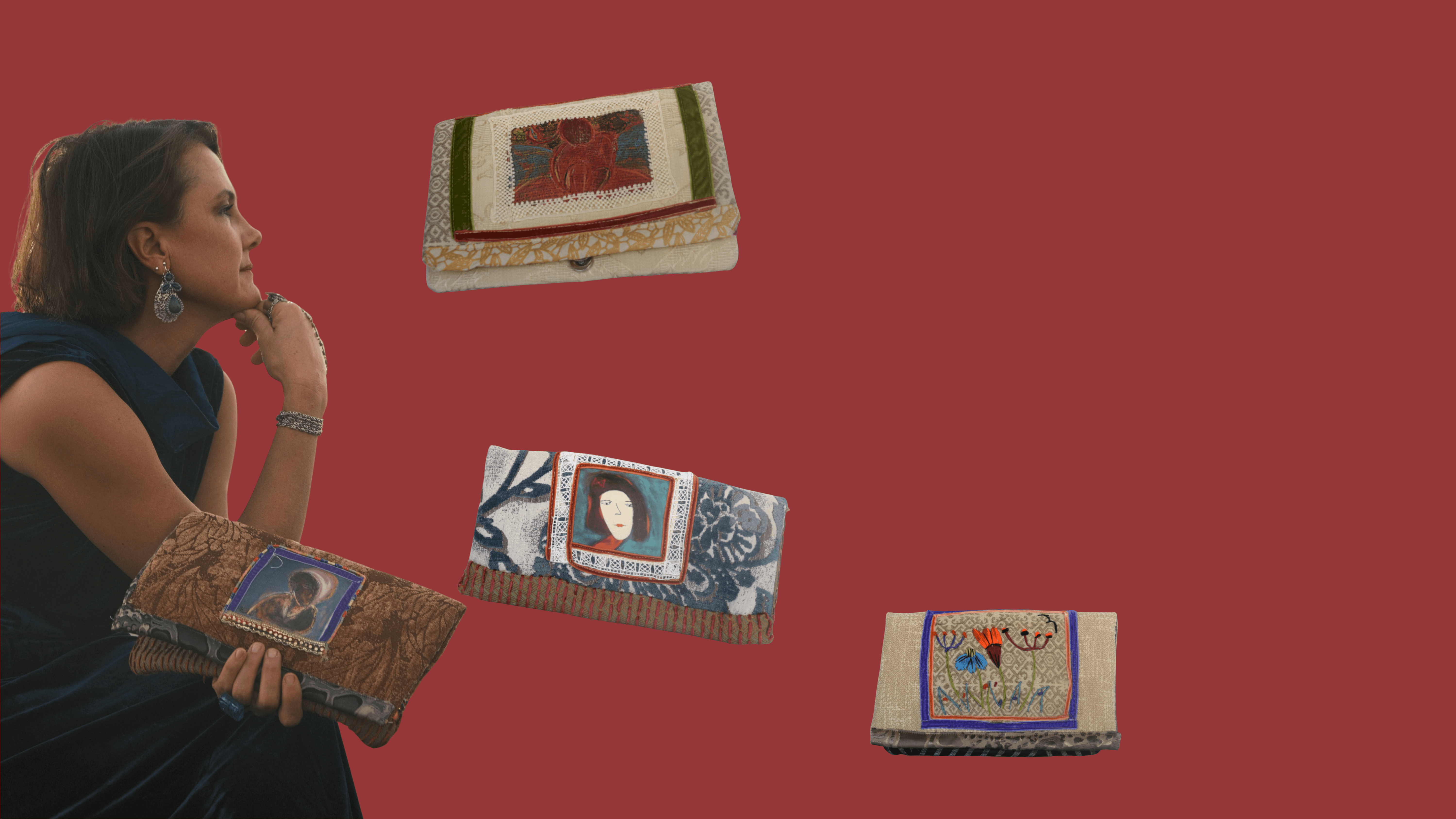 Hand-embroidered clutches that feel like small, wearable paintings—made to carry from coffee to dinner.