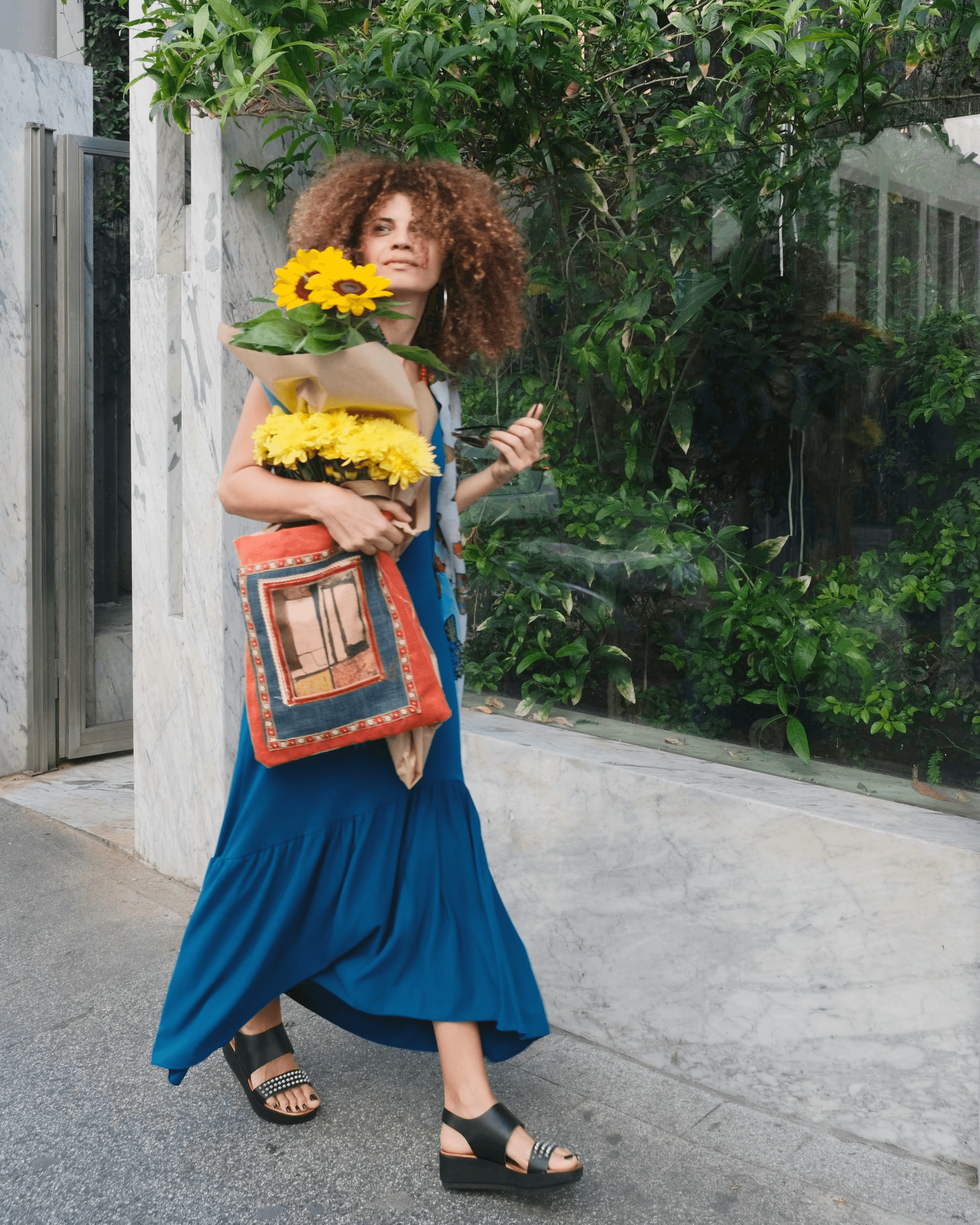 In her home atelier, Caza May, she stitches each piece by hand with a spirit of kaza, abundance and multiplicity, moving between mother, maker, and mathematician. Her work is meant to be lived with, worn, and adorednot just looked at.
